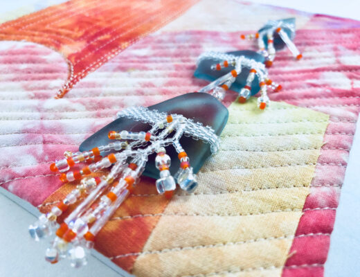 IMG_3157Off they all went for display and as is the usual in my schedule, off I went to another teaching gig. Only THIS time I did something that I haven’t done in years. Started a project for the trip the night before I left.  I’ll write all about that next week when I announce the winner of the following giveaway. Believe me – it’s a funny story! Here is a peek at the project and yes, I couldn’t help myself. I had to “play photos” first and run it through a couple of apps to make it all funky looking. I’ll post big clear pictures next Monday June 15th.