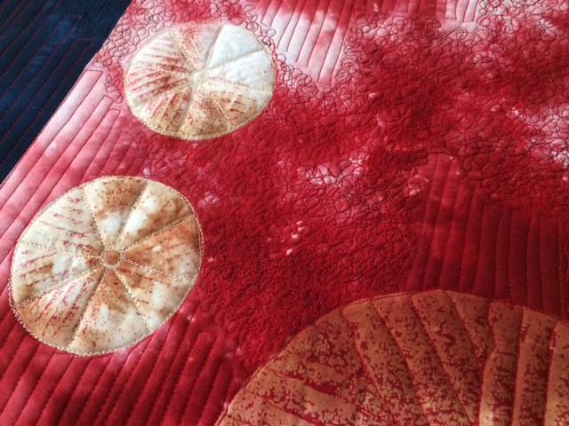 Then after undergraduate work, when the University across the country where we moved to told me they didn’t accept any of my transfer credits, I chose not to do graduate work. I stayed home and started my family, found quilting, and kept little sketchbooks with photos of the work I did. This is the “Apron Exhibit.” Anyone here remember the QuiltArt mail list from waaaay back when? This exhibit instigated one of the first art pieces I made and I loved learning all about things behind the scenes as I helped to send the exhibit traveling all over the country.